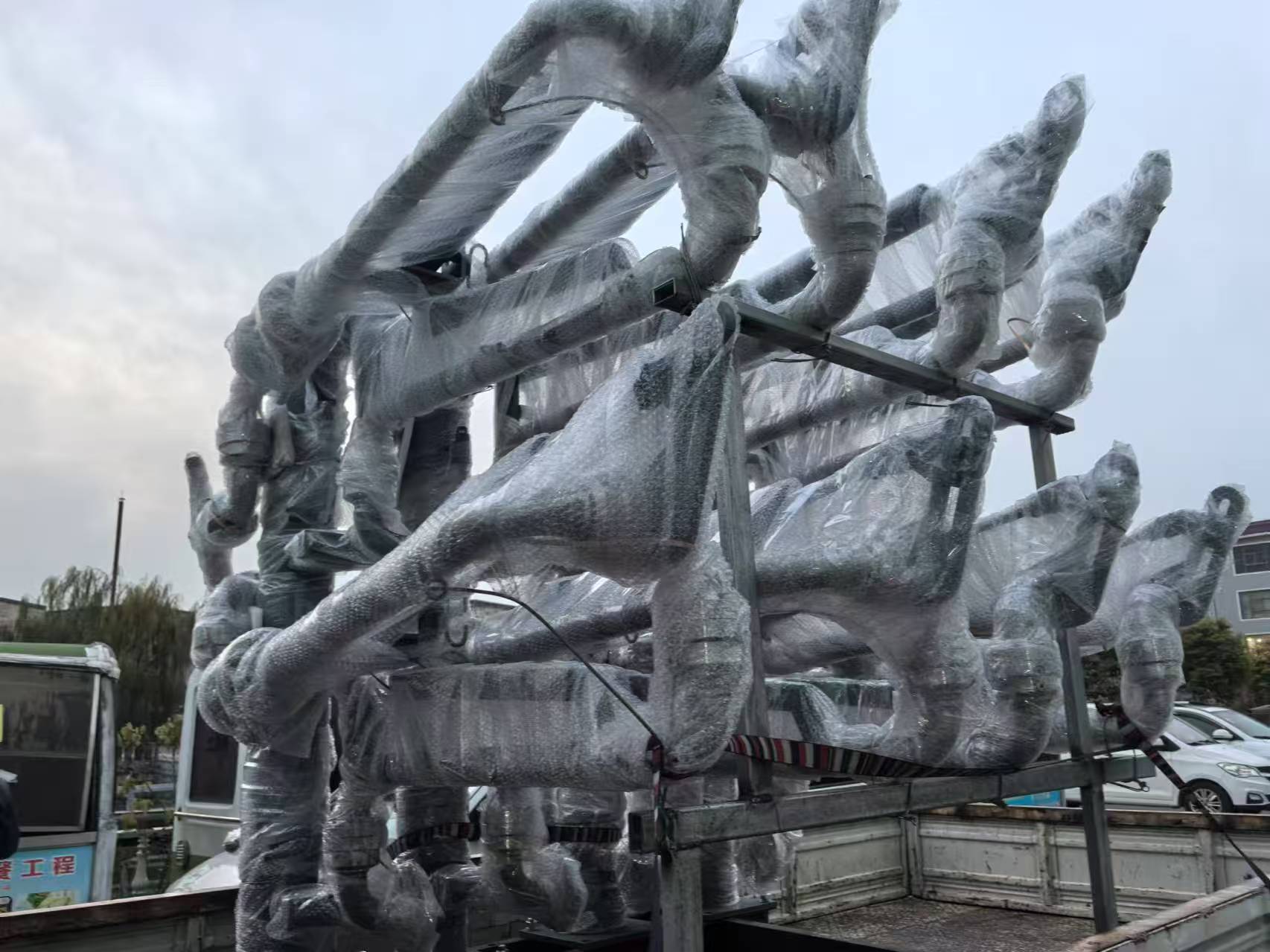 鶴管主要組成部分及配件包括立柱、旋轉(zhuǎn)接頭、內(nèi)臂、外臂、平衡器、垂管、復(fù)位鎖緊裝置、導(dǎo)靜電裝置、真空短路裝置、球閥、鶴管拉斷閥、干式閥、密封帽等。立柱起支撐作用,承受臂展開時的翻轉(zhuǎn)力矩;旋轉(zhuǎn)接頭用于連接液體裝卸臂的不同組件,作相對旋轉(zhuǎn)并能承受荷載;內(nèi)臂連接輸送管道,與外臂連接;外臂可在水平面和垂直面的范圍內(nèi)轉(zhuǎn)動,用于裝卸臂與槽車、槽船對接;平衡器用于平衡外臂轉(zhuǎn)動力矩;垂管與槽車、槽船罐口連接或插入槽罐口;復(fù)位鎖緊裝置在不工作情況下,將臂復(fù)位并鎖定,保證安全;導(dǎo)靜電裝置消除靜電,防止靜電危害;真空短路裝置便于放空管內(nèi)殘存液體,減少污染,增加安全性;球閥、鶴管拉斷閥、干式閥提供額外的安全保障;密封帽起密閉作用。